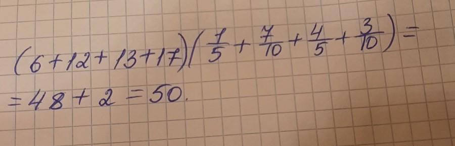 (6*1/5+13×4/5)+(12×7/10+17*3/10)= 20+30=50