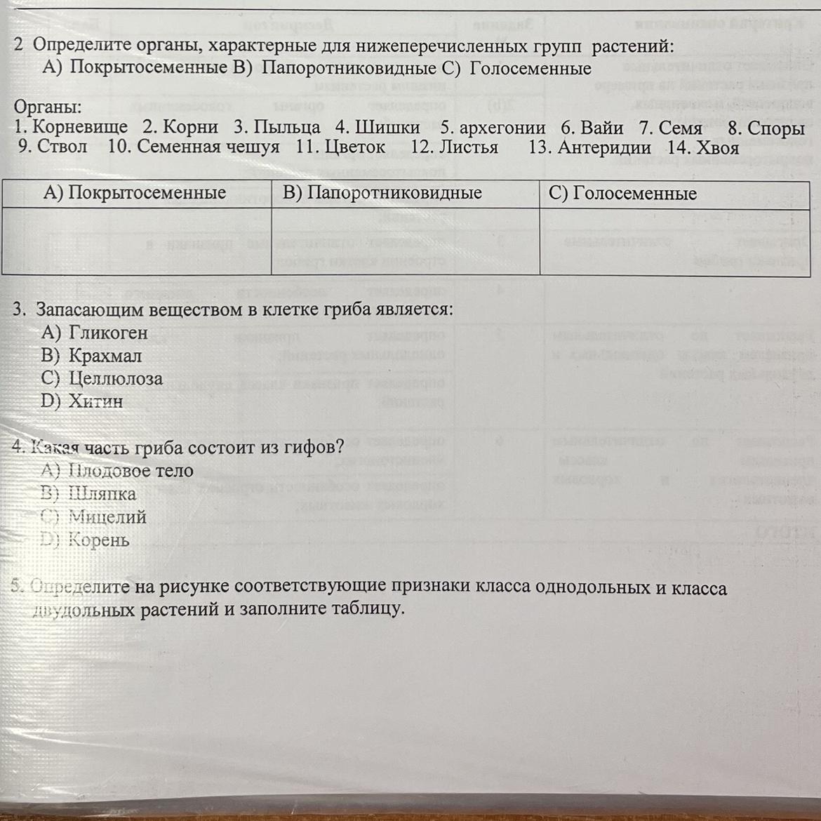 2 Определите органы, характерные для нижеперечисленных групп растений: