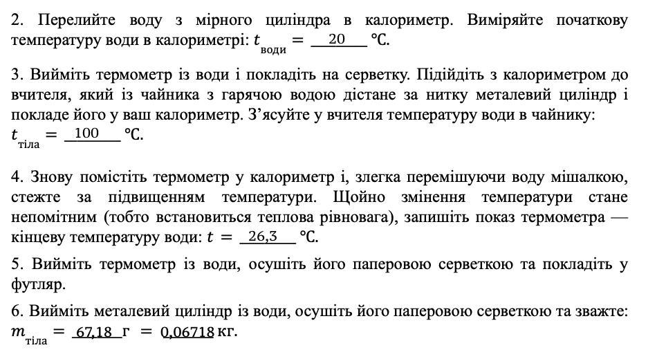 2. Визначте питому теплоємність металу, з якого виготовлений циліндр.
