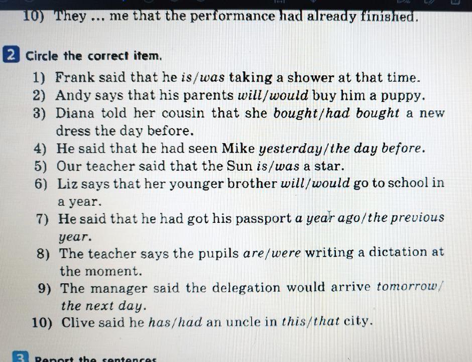 Ответ:1.was taking,2.will,3.bought,4the day before,5.was,6 will, 7a year ago , 8are,9 the next day , 10 has,that