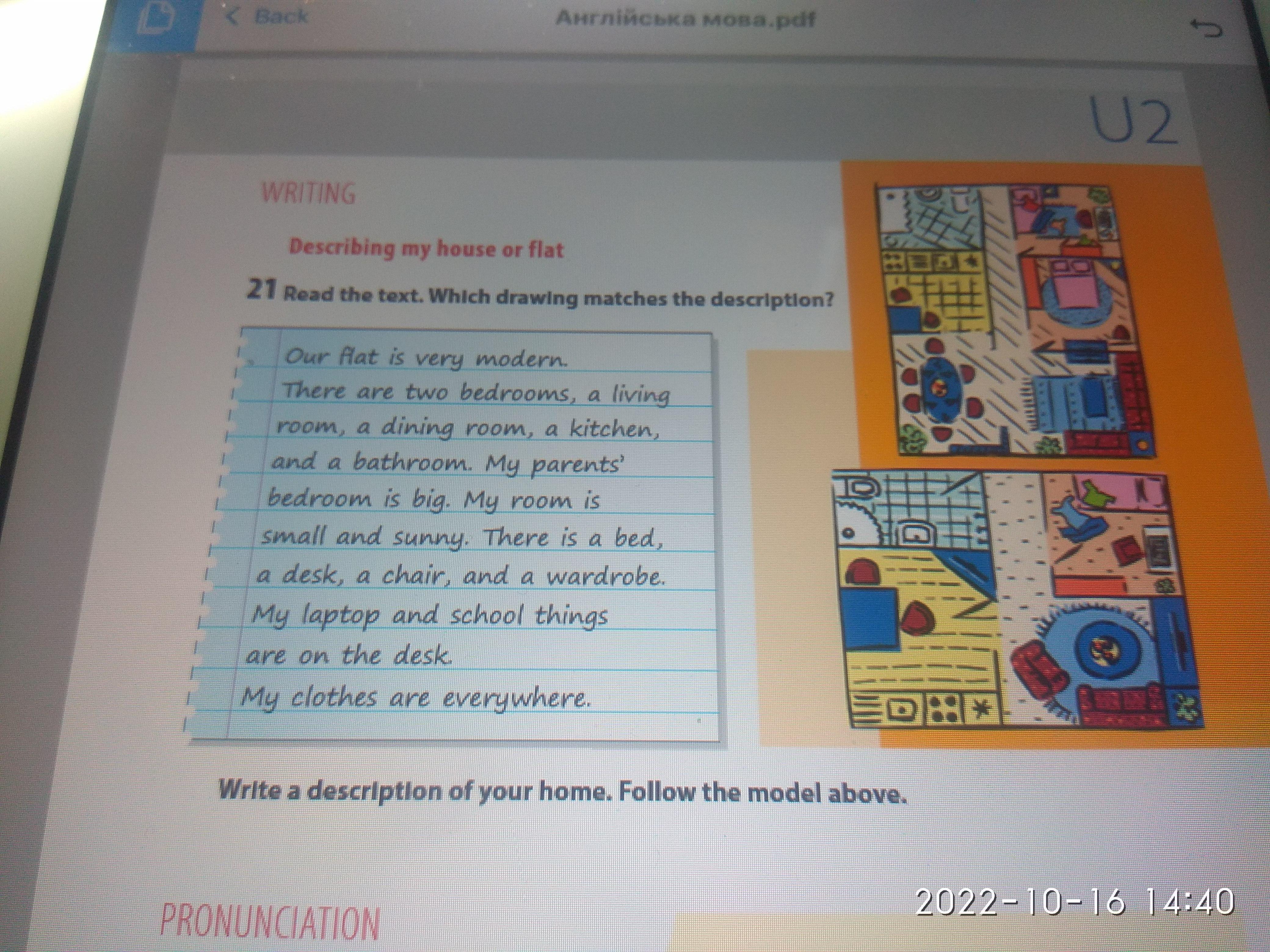 Описати свою квартиру. Краще по англійській мові. Зразок вправа 21 сторінка 31