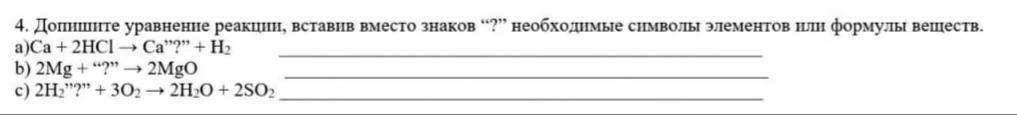 4. Допишите уравнение реакции, вставив вместо знаков "?" необходимые символы элементов или формулы веществ.