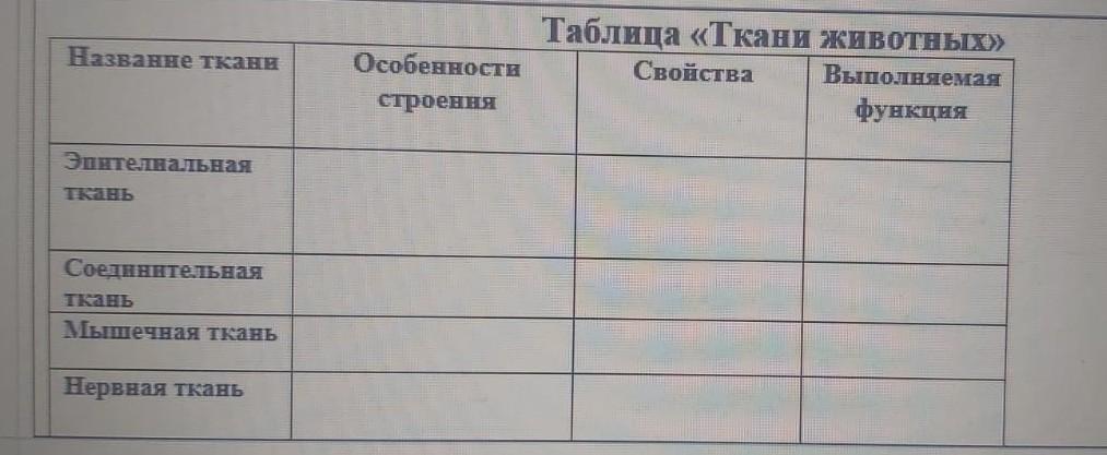 А где пятая ткань в таблице нервная ткань?