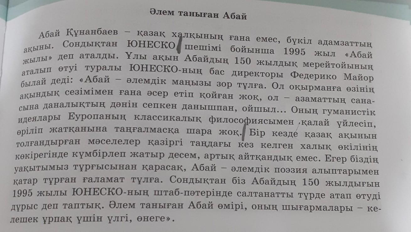 Шешімі бойынша 1995 жыл «Абай жылы деп аталды. Ұлы ақын Абайдын 150 жылдық мерейтойынын аталып етуi туралы ЮНЕСКО-нын бас директоры Федерико Майор былай деді "Абай - әлемдік маңызы зор тулга. Ол окырманга озiнiң акындык сезiмiмен гана әсер етiп койган жок. ол - азаматтың сана- сына даналыктын дәнiн сепкен данышпан, ойшыл... Оның гуманистік идеялары Еуропаның классикалык философиясымен калай лесiп, ерiлiп жатканына тангалмаска шара жок".