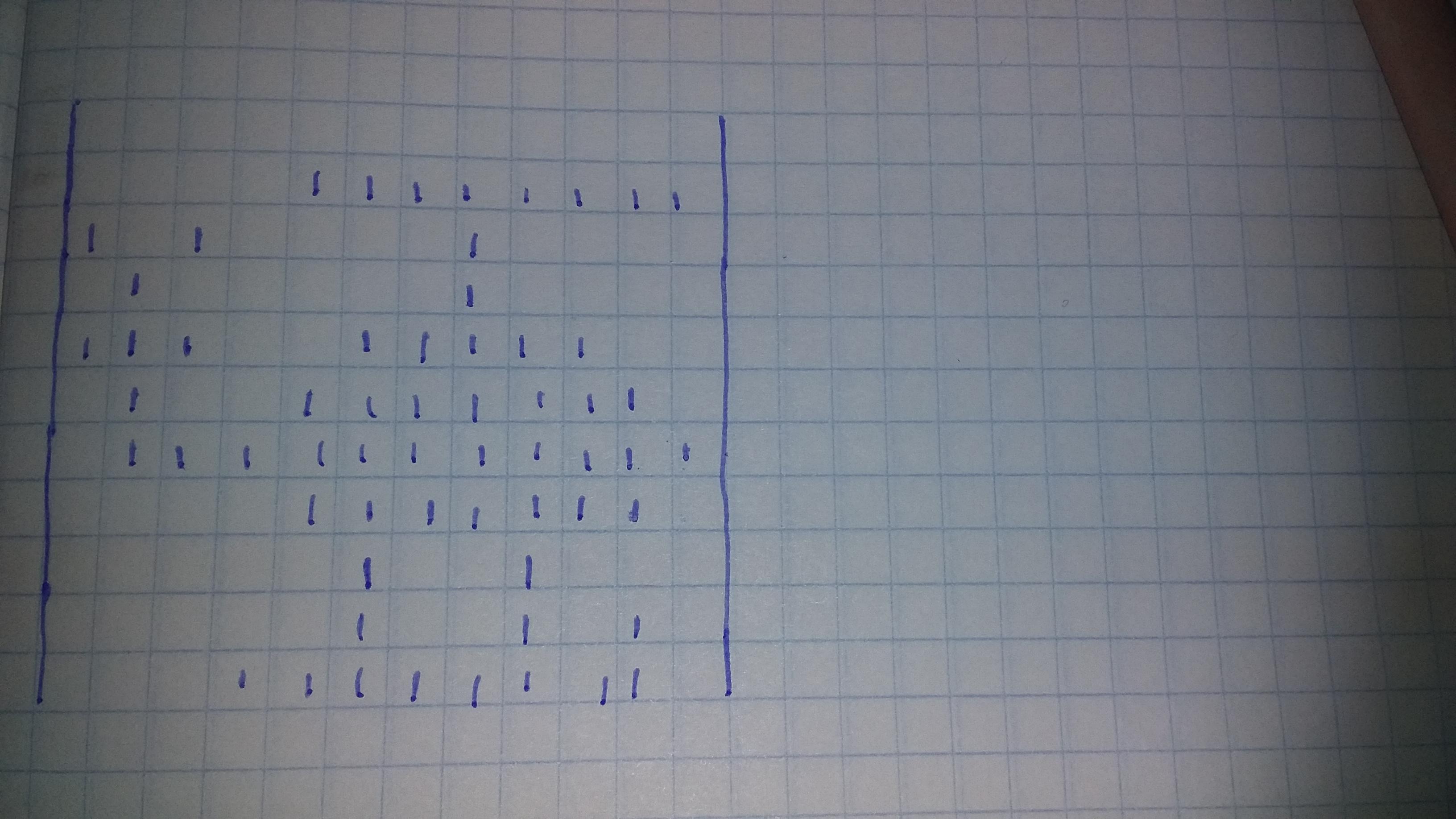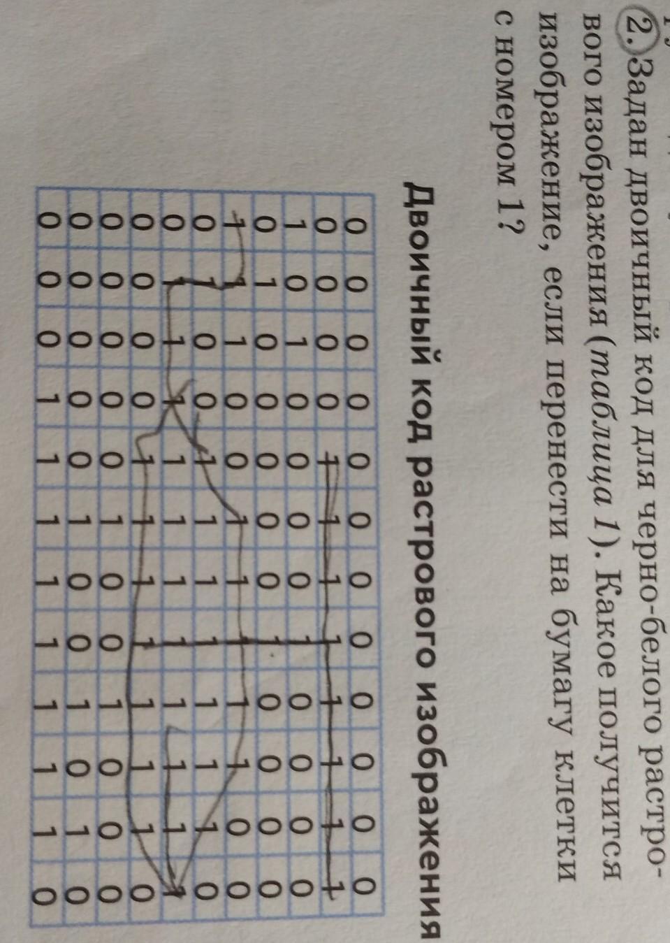 2. Задан двоичный код для черно-белого растрового изображения (таблица 1). Какое получится изображение, если перенести на бумагу клетки с номером 1?