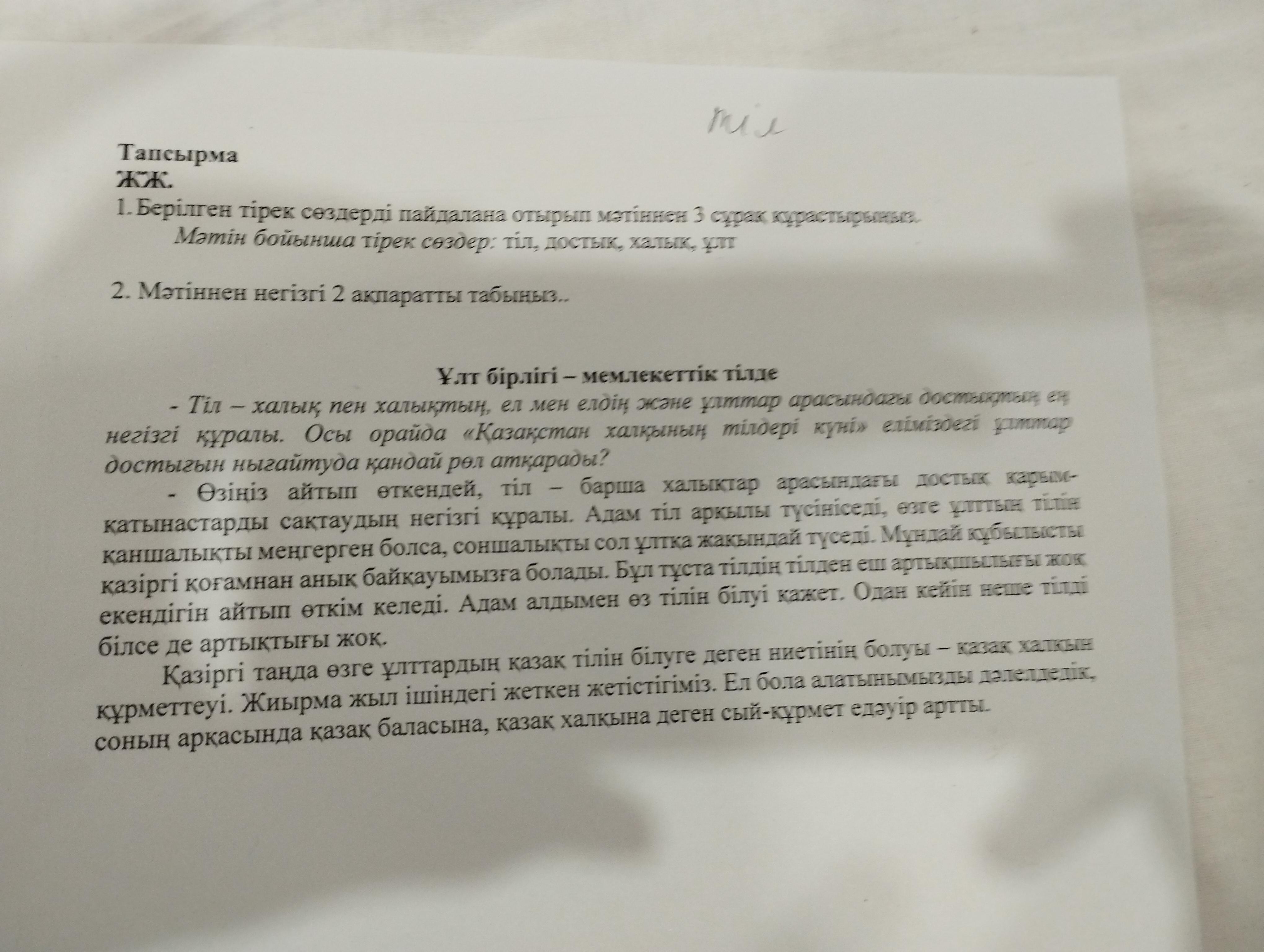 1) Халық, ел мен ұлттар арасындағы негізгі құрал? (жауабы: тіл)
