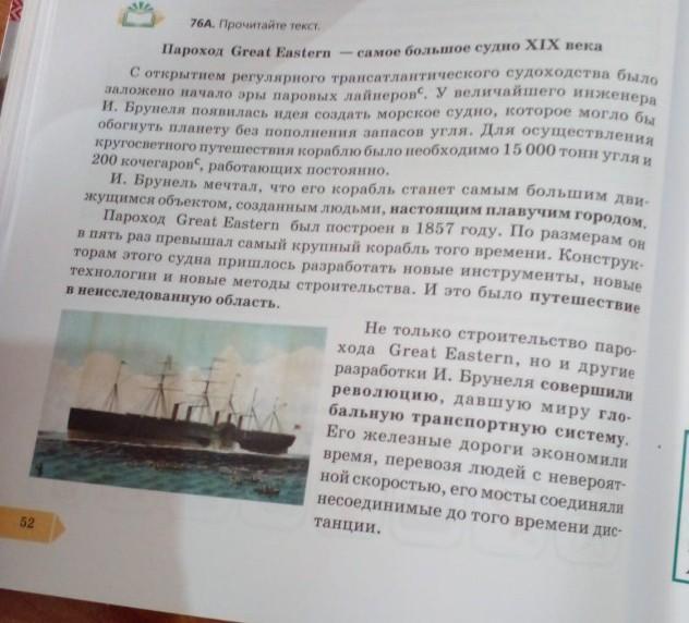 76Б. Определите стиль и тип речи. Какова тема текста? Сформулируйте его основную мысль. Задайте к тексту вопросы, в ответах на которые можно исполь зовать выделенные выражения. Какие новшества применил инженер И. Брунель при строительстве парохода? Можно ли назвать этот лайнер чудом того времени? Почему?