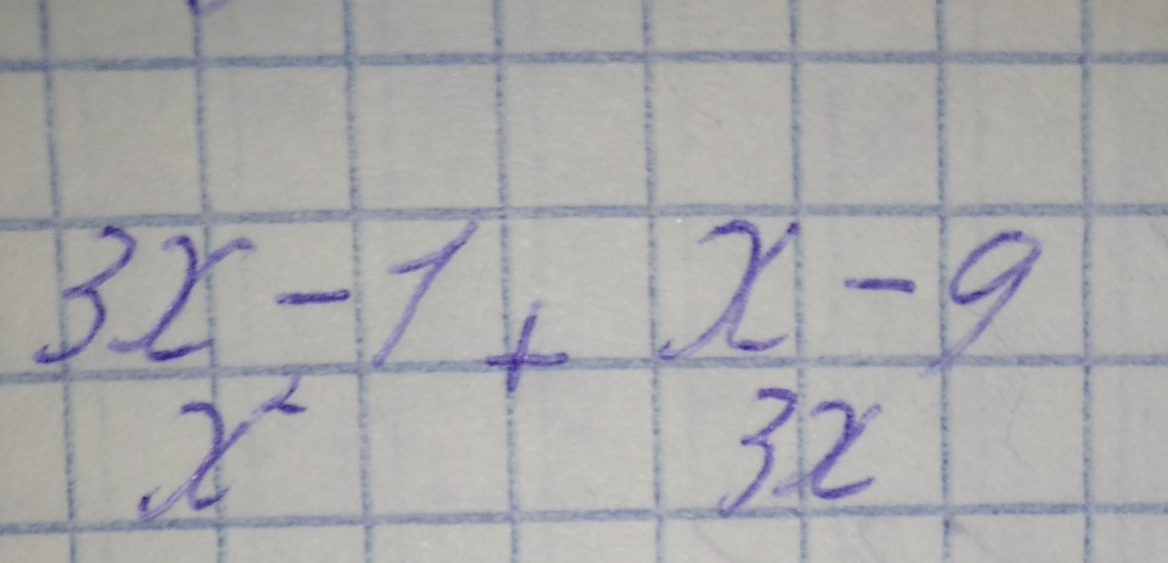сперва возводитшь в общий знаменатель. затем 3х^2 делишь на х^2 и 3х. и ответ умножаешь на каждый числитель. и в конце всё складываешь.