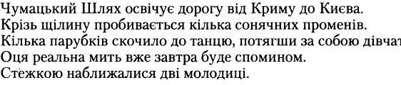 1 лист: Шлях освічує, проміні пробиваються, парубк скочило потягши,мить буде, молодиці наближалися.