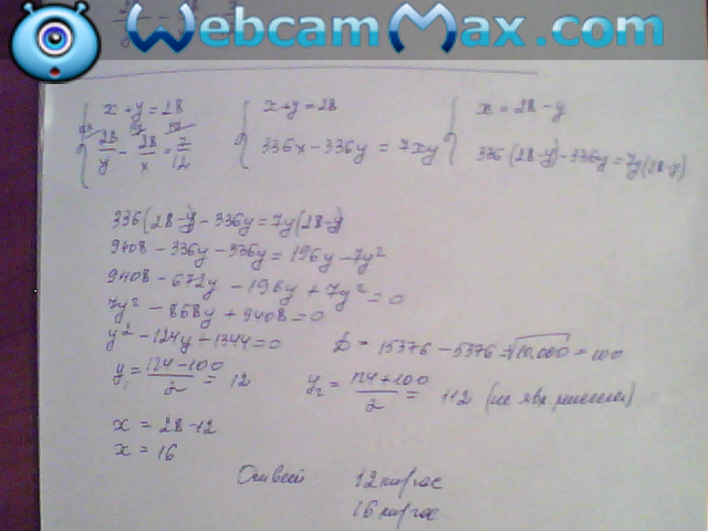Дам 40 баллов за подробное решение и объявлю ответ лучшим. Два велосипедиста выезжают одновременно навстречу друг другу из пунктов А и В, расстояние между которыми 28 км. Через час велосипедисты встречаются и, не останавливаясь, продолжают ехать с той же скоростью. Первый прибывает в пункт В на 35 мин скорее, чем второй в пункт А. Определите скорость каждого велосипедиста.