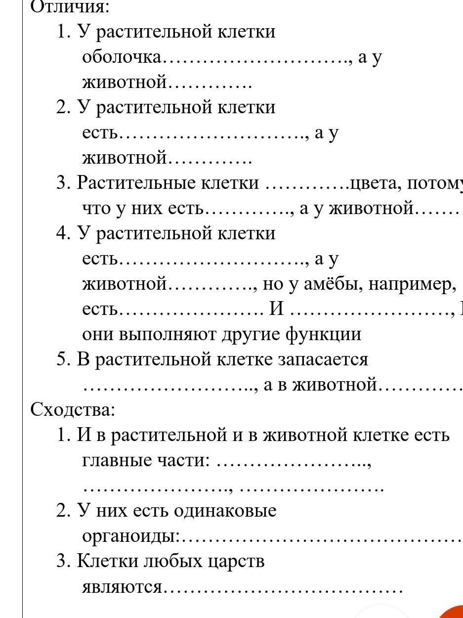 1) у растительной клетки одно ядро, а у животной их несколько