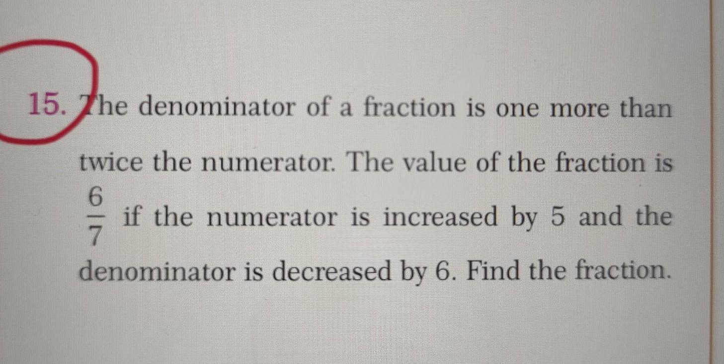 Знаменатель дроби на единицу больше числителя. Значение дроби равно 6/ 7, если числитель увеличить на 5, а знаменатель уменьшить на 6. Найдите дробь.
