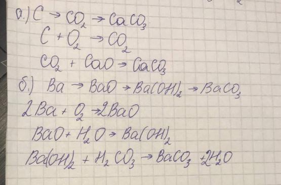 б) Ва➡️ ВаО ➡️ Ва(ОН) 2 ➡️ ВаСО3