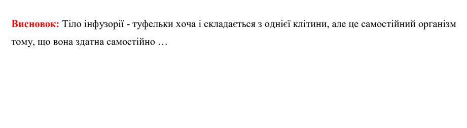 Тіло інфузорії - туфельки хоча і складається з однієї клітини, але це самостійний організм тому, що вона здатна самостійно дихати, харчуватися, розмножуватися, пересуватися
