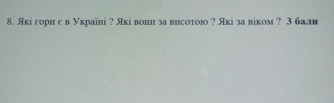 в Україні є два гірських масиві. кримські гори та гори Карпати. висота кримських гір 1545м. найвищою точкою цих гір є гора Роман-Кош. висота Карпат досягає до позначки в 2655м. найвища точка Карпат гора Говерла. обидві гори вважаються молодими