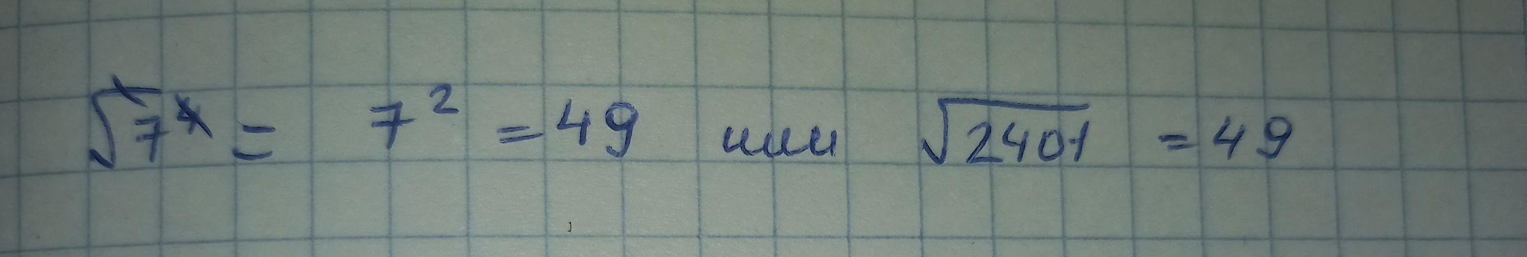 sqrt(7^4)=>сократим корень на 4-го степени теперь у нас получилось 7^2=>49