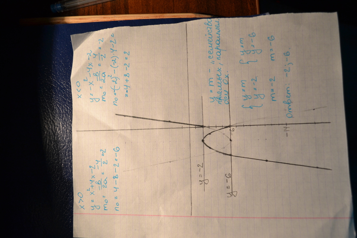 Постройте график функции y=|x|(x+4)-2 и определите,при каких значениях m прямая y = m имеет с графиком две общие точки.