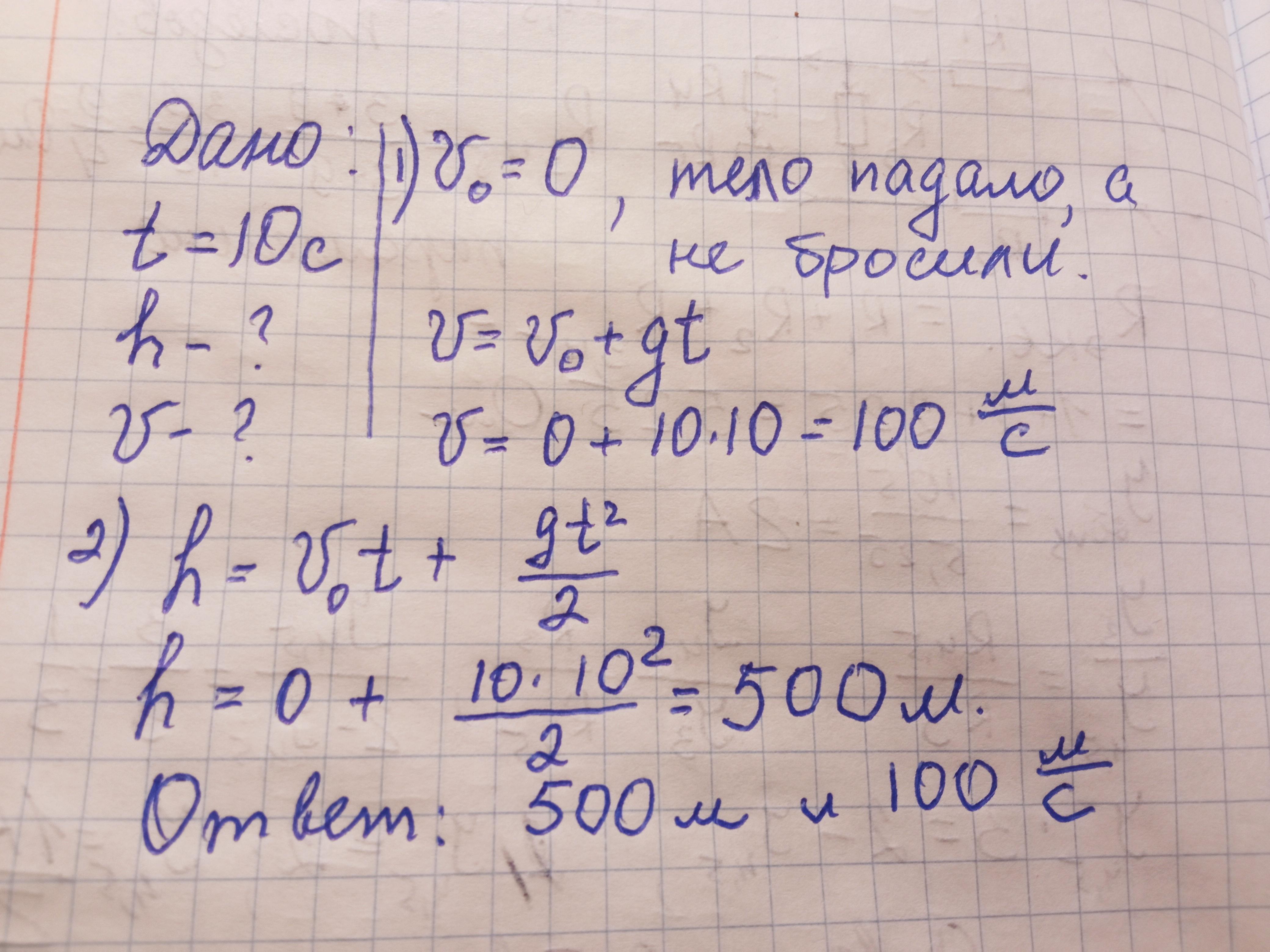Тіло вільно падало протягом 10 с. Визначити висоту, з якої падало тіло й кінцеву швидкість падіння