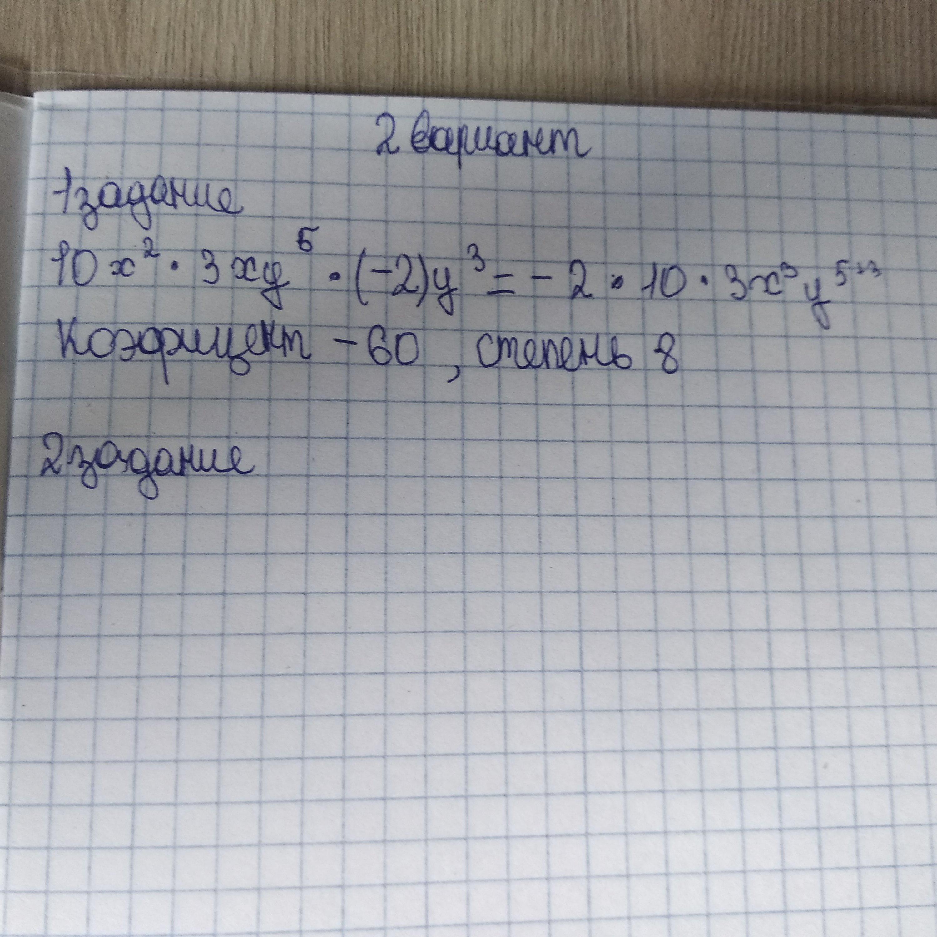 1) Дан одночлен 10x2 ×3ху5 ×(-2)уз