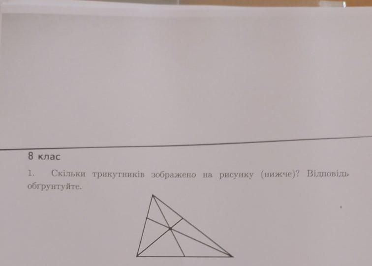 3 сторони - 3 медіани число трикутників 3*2=6 і + великий=7