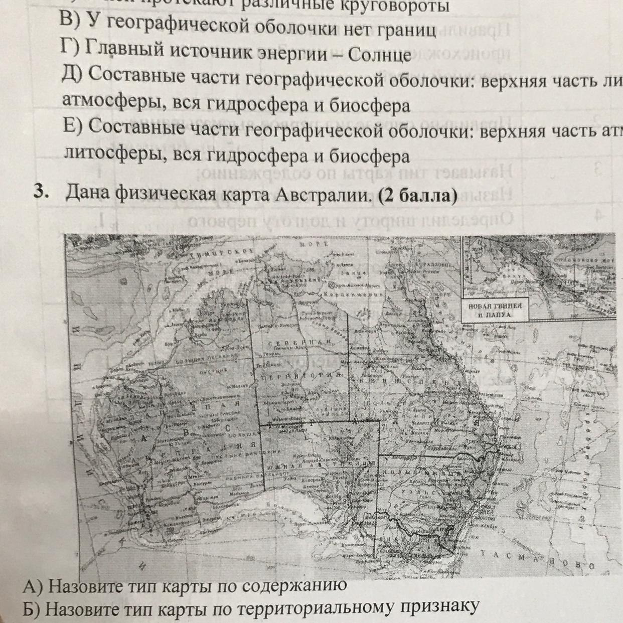 3. Дана физическая карта Австралии. (2 балла)