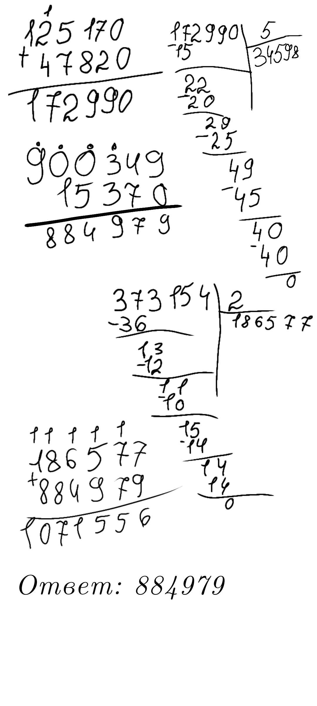 РАБОТА В ПАРЕ 3 Вычисли, записывая решение по действиям. 706 271*2 (47 820+125 170):5 373 154:2+900 349-15 370