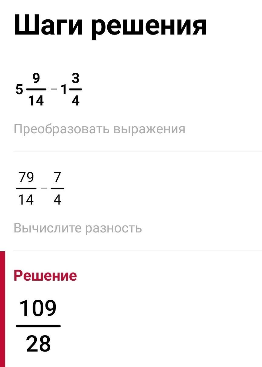 5 9/14-1 3/4= 5 18/28- 1 24/28=3 46/28-24/28=3 22/28