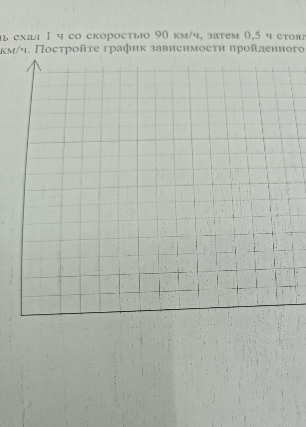 5. Автомобиль ехал 1 ч со скоростью 90 км/ч, затем 0,5 ч стоял, а потом ехал еще 2 ч со скоростью 80 км/ч. Постройте график зависимости пройденного пути от времени.