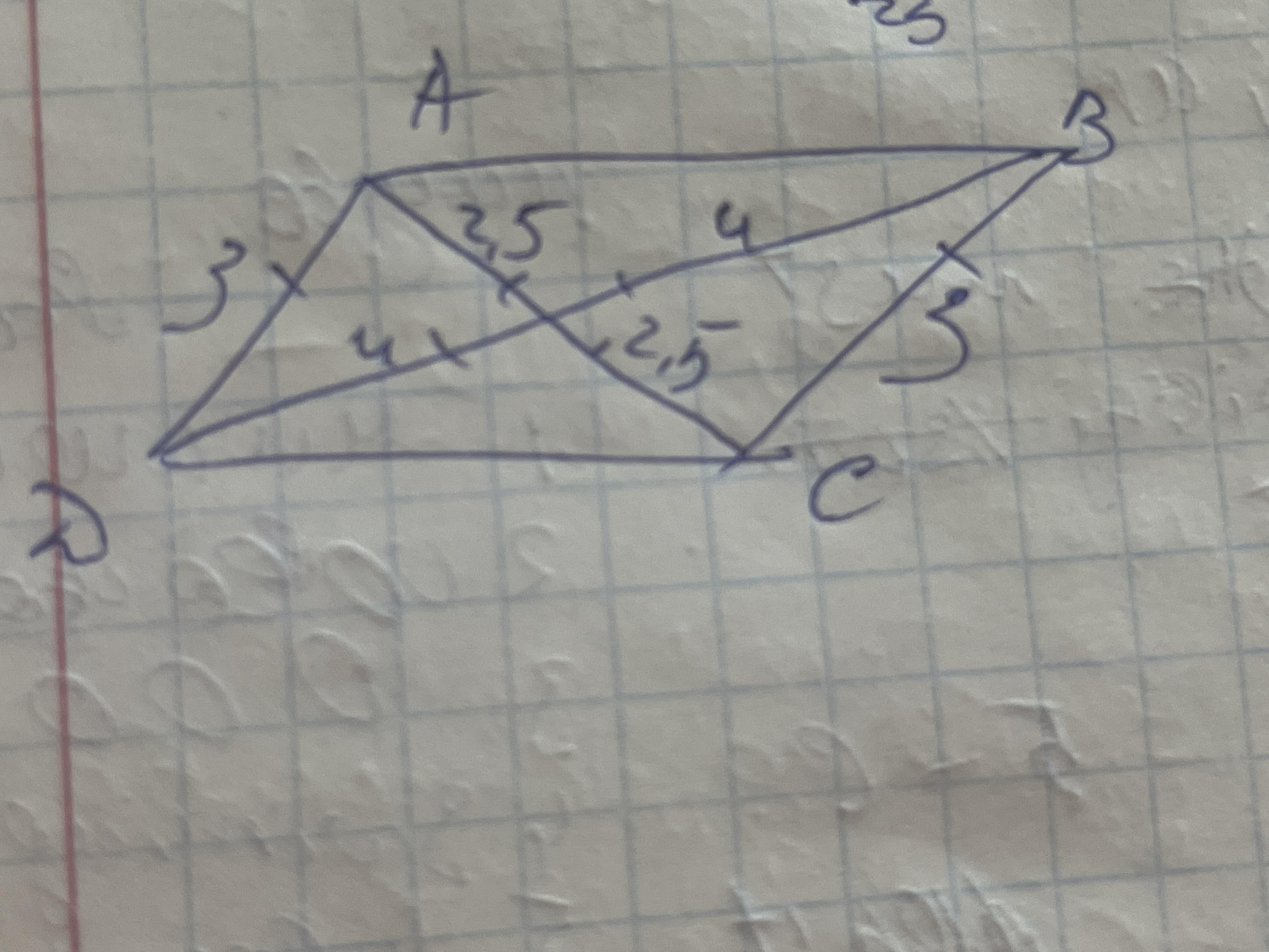 у паралелограмі ABCD діагоналі дорівнюють 8 см і 5 см, сторона BC - 3 см; точка O - точка перетину діагоналей. Чому дорівнює периметр трикутник AOD?