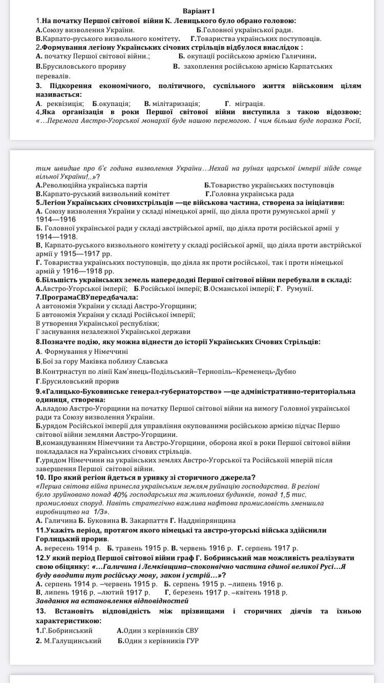 12. У який період Першої світової війни граф Г. Бобринський мав можливість реалізувати свою обіцянку: "...Галичина і Лемківщина - споконвічно частина єдиної великої Русі...Я буду вводити тут російську мову, закон і устрій..."?