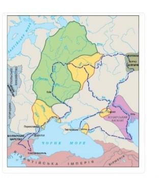 Наведена історична карта дає змогу побичити ... а) простежити шлях «із варягів у греки» в) визначити місця розселення східнослов'янських племен д) визначити межі Русі-України в Х ст. е) розкрити процес поширення християнства за князiв Ігоря та Ольги б) указати території, які увійшли до складу Русі-України за князя Святослава г) показати шляхи нападів кочовиків на Русь- Україну e) характеризувати зовнішньополітичну дiяльнiсть князя Святослава