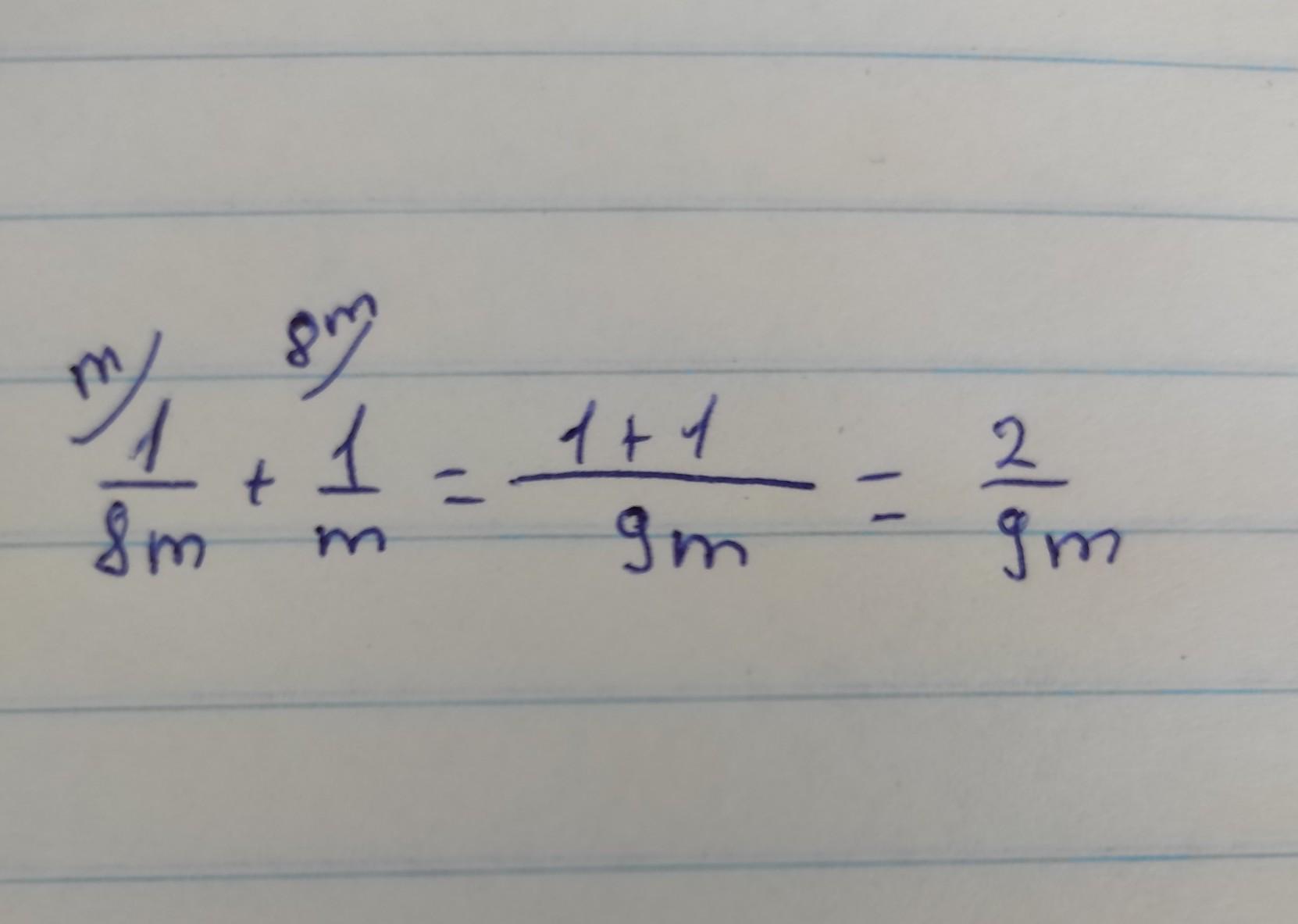 1/8m+1/m= 1/8m+8×1/8m=1/8m+8/8m=1+8/8m=9/8m