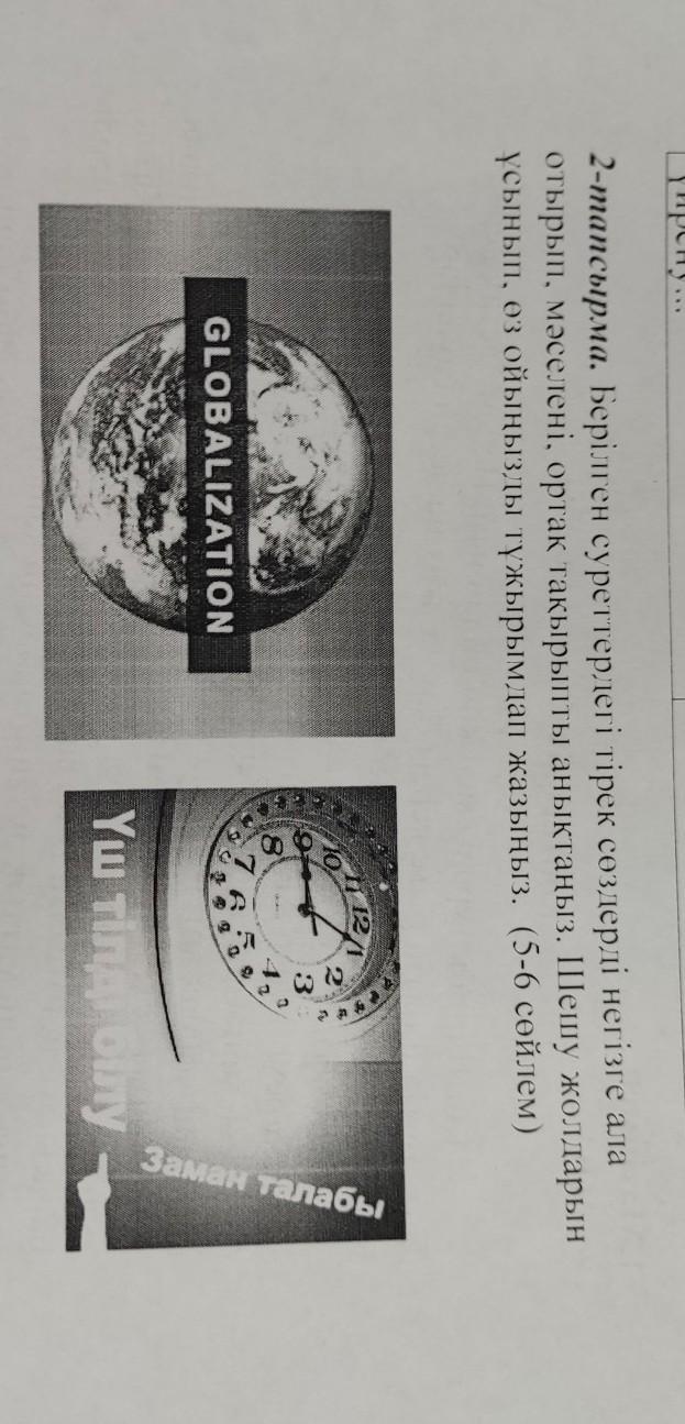 Берілген суреттердегі тірек сөздерді негізге ала отырып, мəселенi, ортак такырыпты аныктаныз. Шешу жолдарын усынып, оз ойынызды тұжырымдап жазыныз. (5-6 сөйлем)