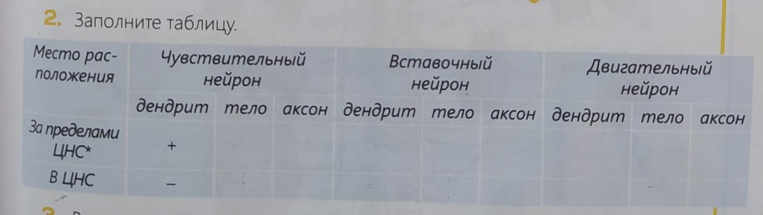 Место расположения: Чувствительный нейрон/ Вставочный нейрон/ Двигательный нейрон.