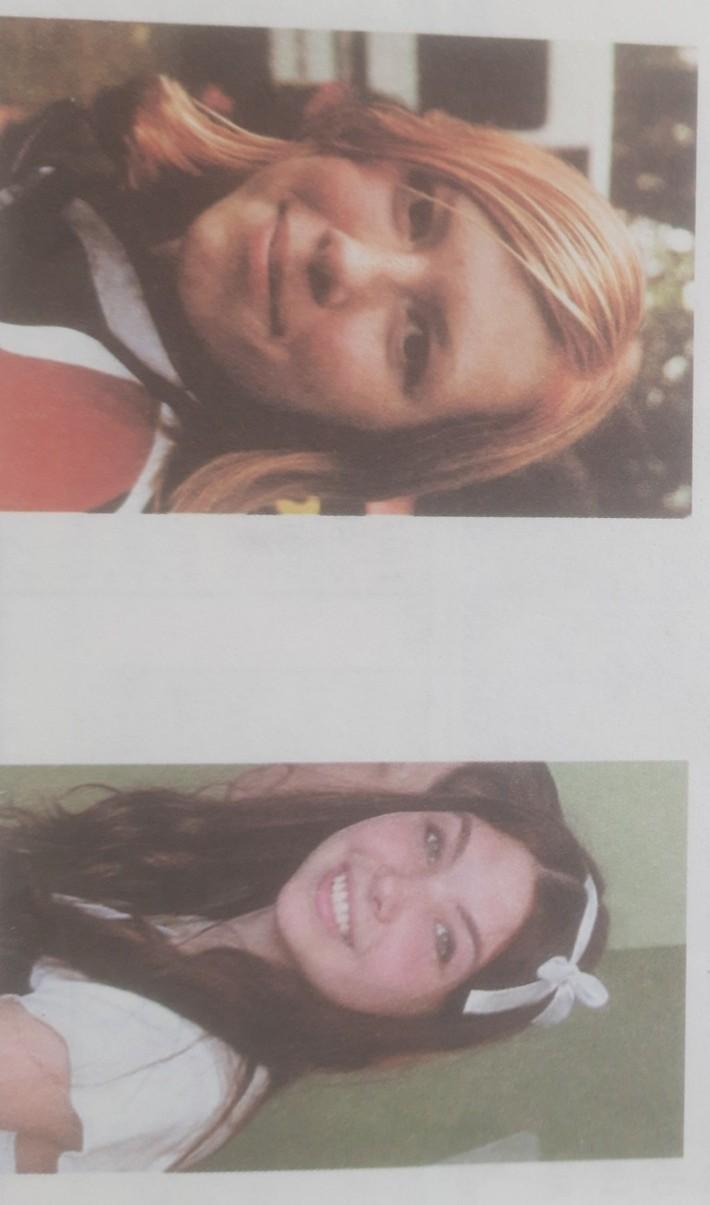 Jennifer's eyes are green.-Not really, I'm afraid.They are grey 1. Linda's face is freckled. 2. Jennifer's cheeks are plump. 3. Linda's hair is long and curly. 5. Linda's nose is straight. 6. Jennifer's face is oval. 7. Linda's forehead is low. 4. Jennifer's teeth are uneven. 8. Jennifer's eyelashes are thick.