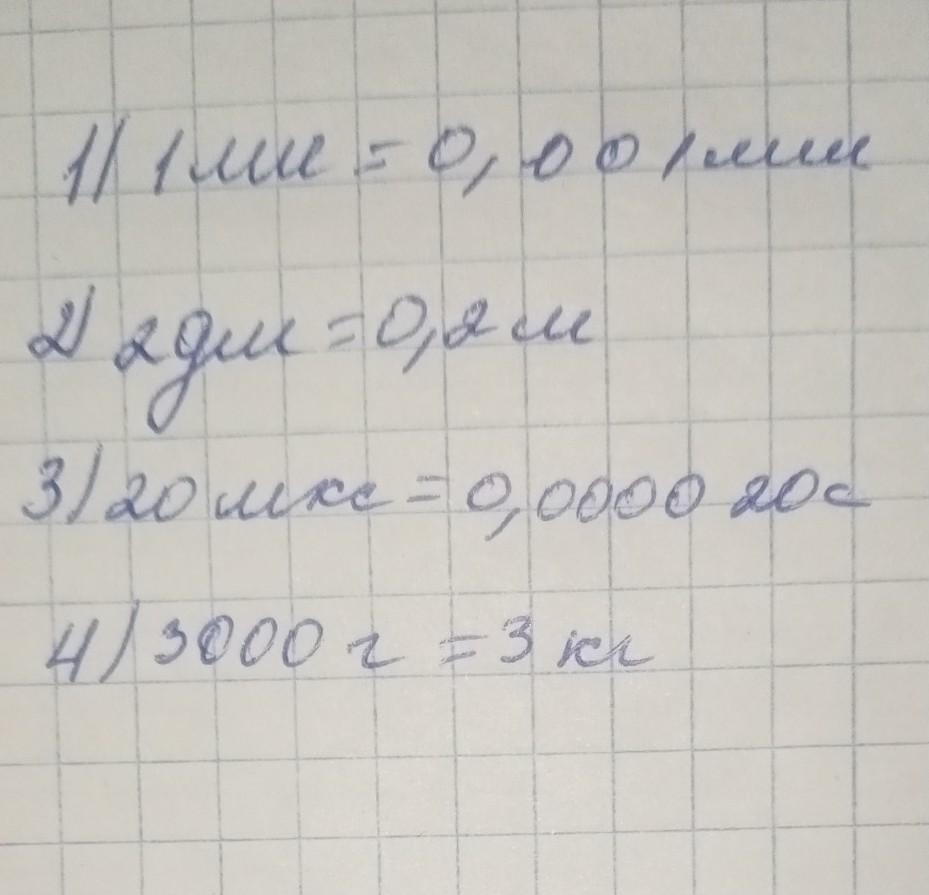 3. Преобразуйте следуюшне единицы измерения в единицы измерения системы СИ: 1) 10 дм =.........м 2)20 см=............ м 3)100 км=.......с 4)3000 г=.......... кг