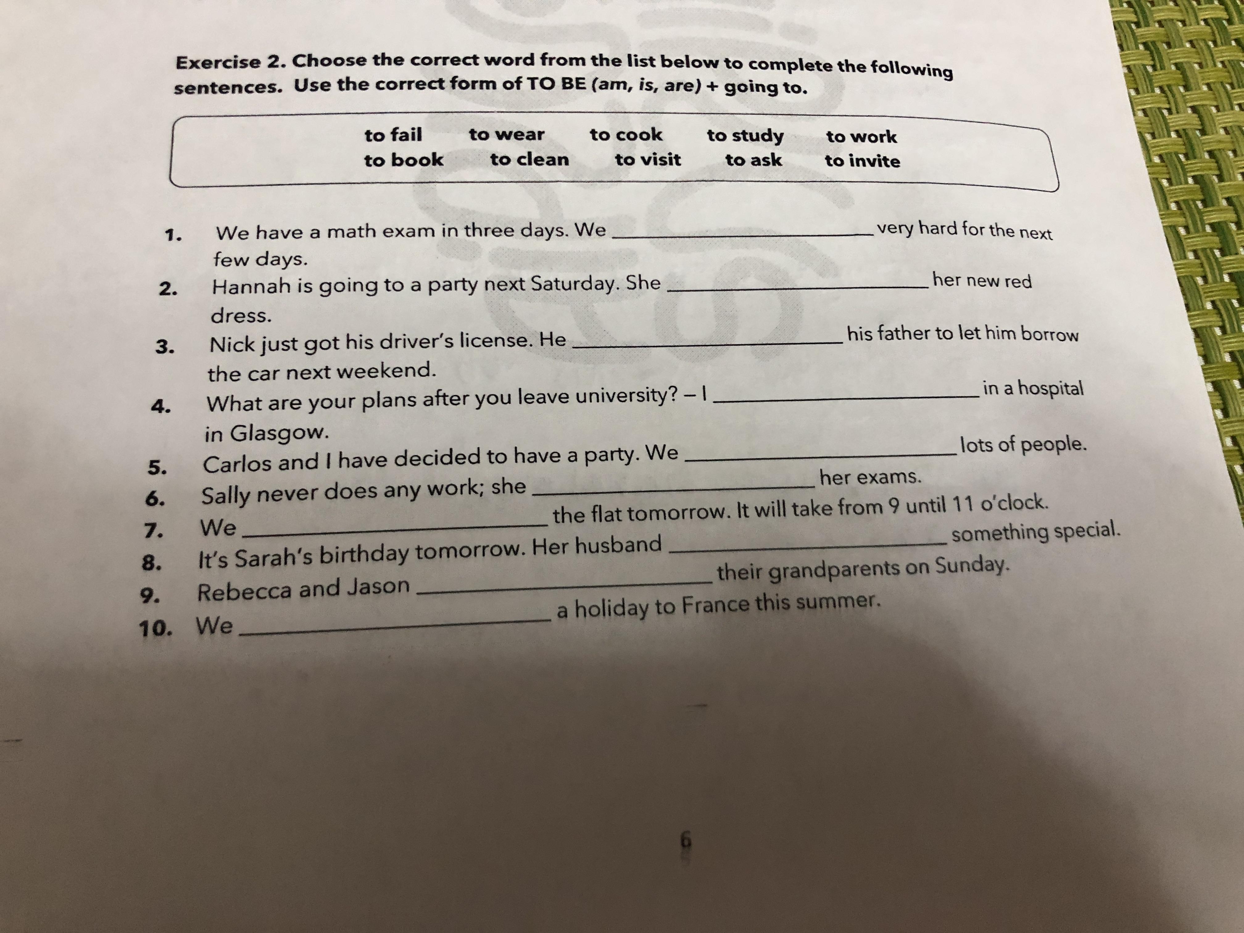 choose the correct word from the list below to complete the following sentences.use the correct form of to be(am,is,are)+going to.