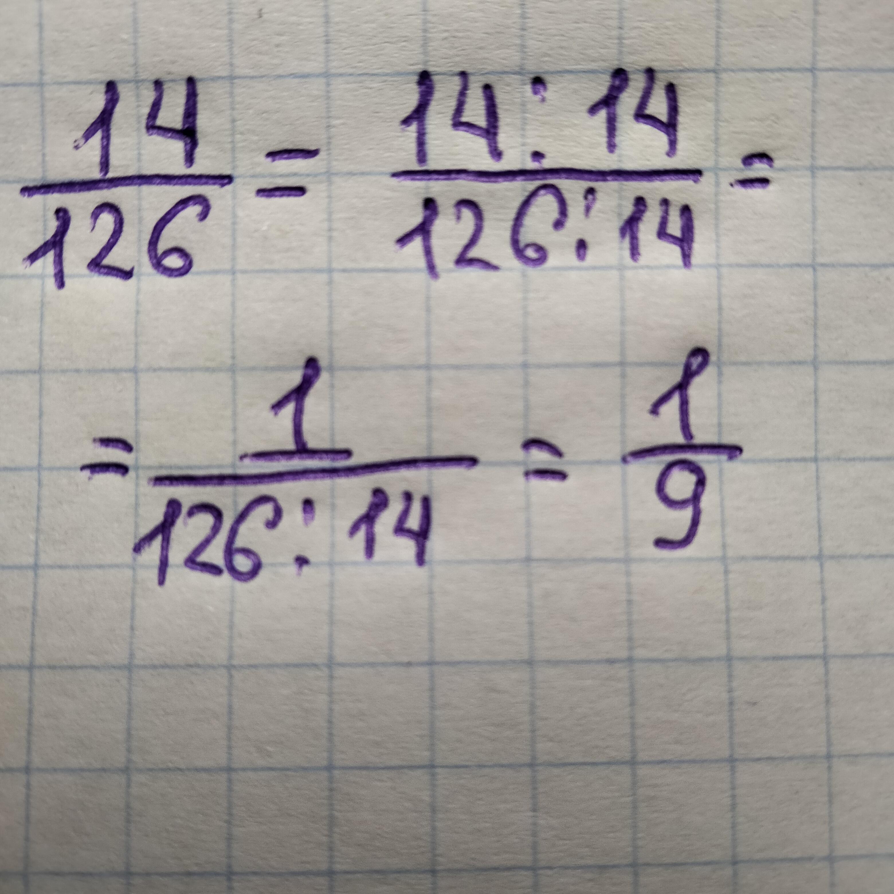 14/126=1/9 (Ділимо 14 і 126 на 14)