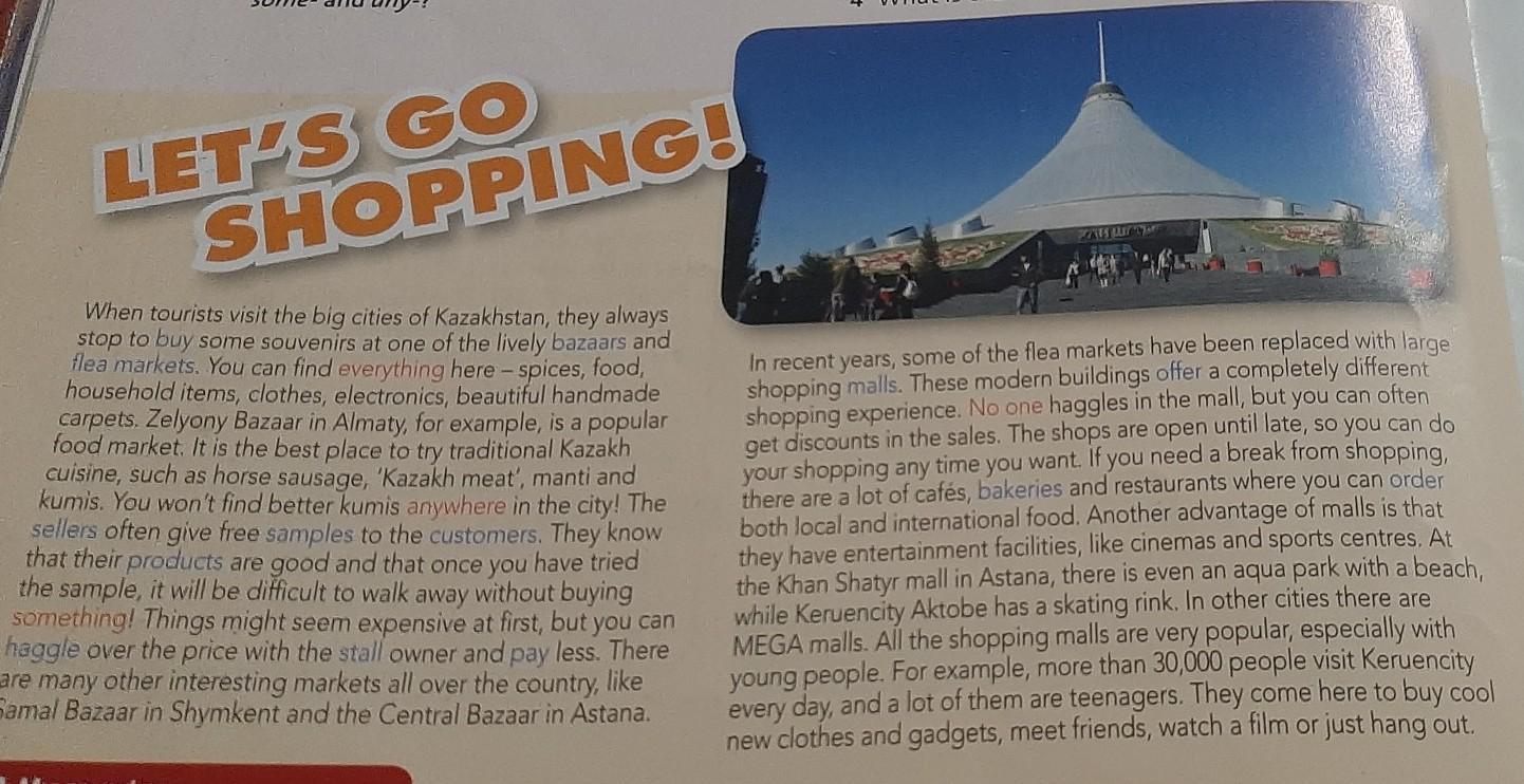 В Казахстане есть классные, красивые места . В Астане есть ханшатыр, и он очень похож на пирамиду.там можно сделать шоппинг.в ханшатыре очень много людей .Например в керуен сити бывает каждый день по 30000 человек. и к эжтому уже все привыкли