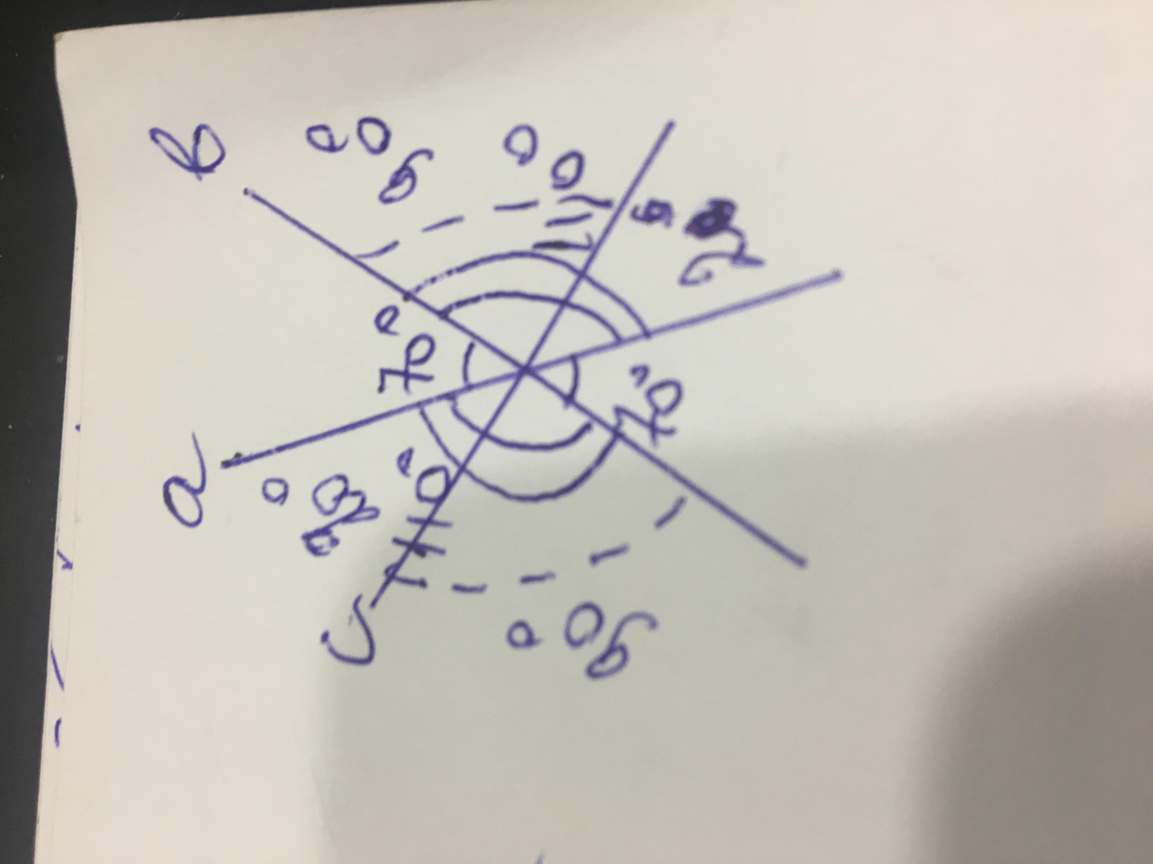 При пересечении трёх прямых у нас получилось три пары вертикальных углов,в каждой паре углы равны между собой