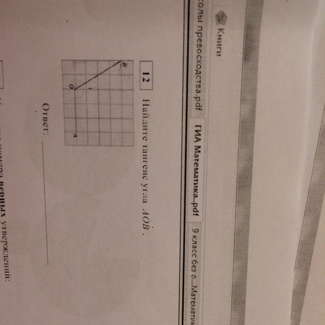 AOB - тупой угол, назовем его b. Вспомним замечательное свойство, что тангенс тупого угла равен минус тангенсу угла 180 минус этот самый тупой угол: