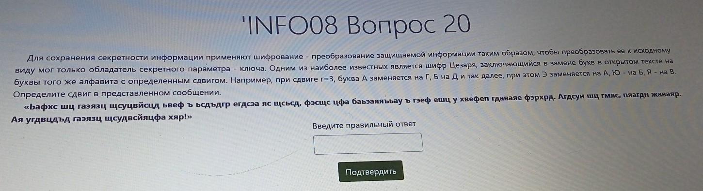 String = "ьафхс шц гаэязц щсуцвйсцд ьвефъведьдер егдсэа яс щсьсд, фэсщс цфа баьзаяяъБауъ гэеф ешц у хвефеп гдаваяе фэрхрд. Агдсуи шц гмяс, пиади жаваяр. Ая угдвцдъд гарязц щсудвсйяцфа хяр!".lower()