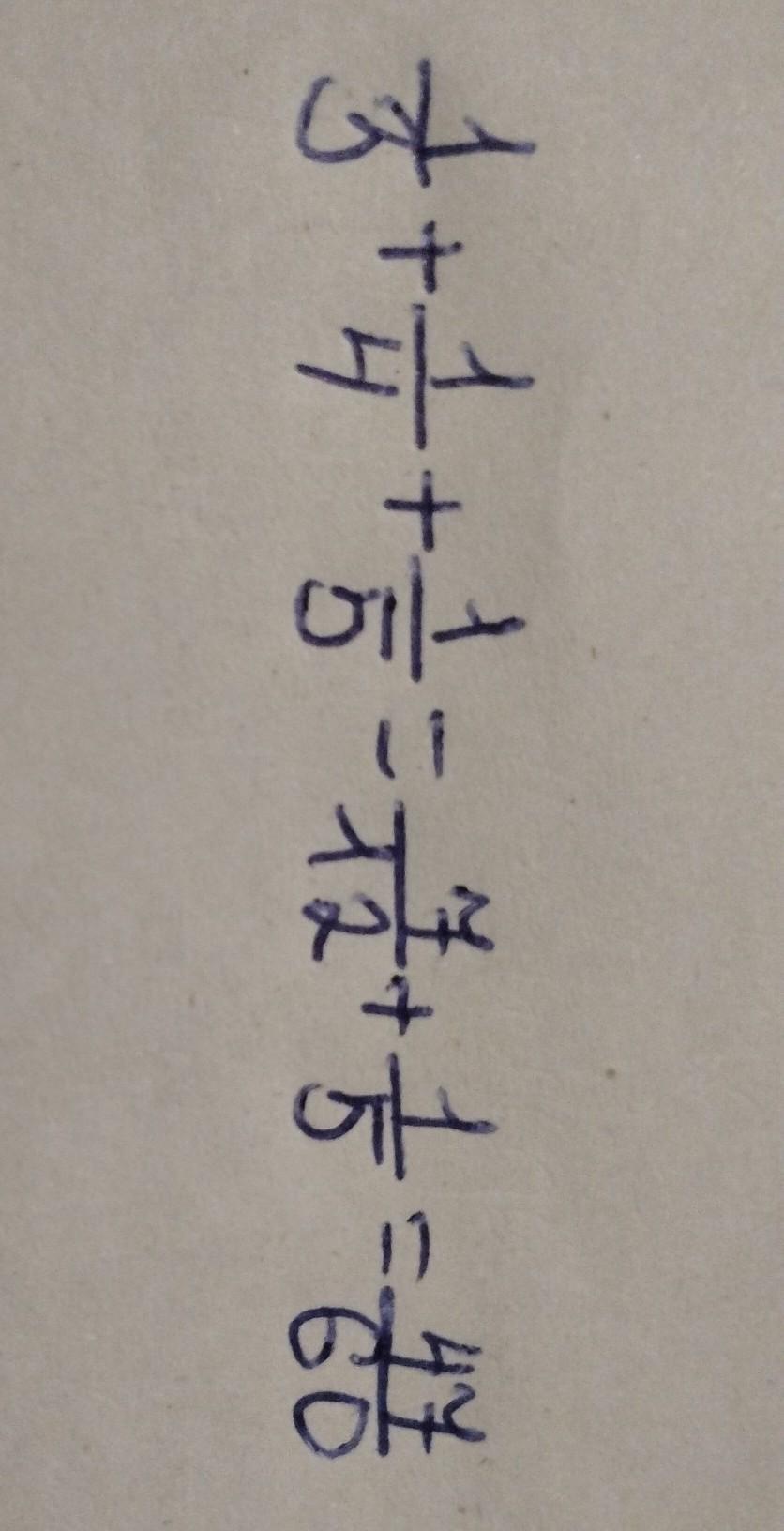 1/3 + 1/4 + 1/5 = 20/60 + 15/60 + 12/60 =