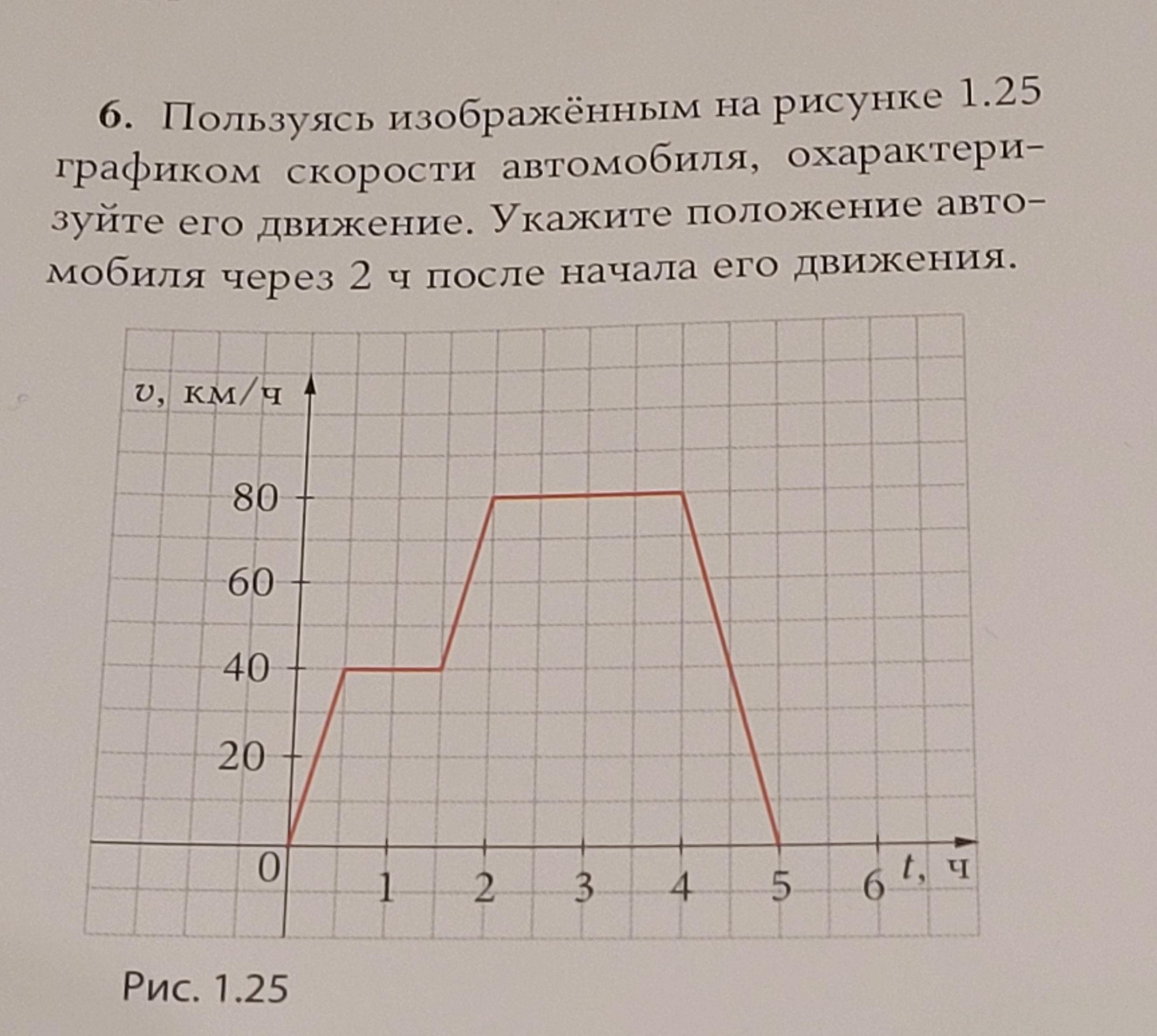 Пятый участок от 4 до 5 ч - равнозамедленное движение, на котором скорость автомобиля равномерно уменьшается от V₄ = 80 до V₅ = 0 км/ч. На этом участке автомобиль пройдет путь: