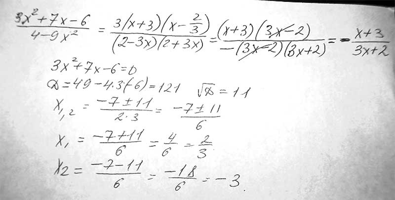 3x²+7x-6 (x+3)(x-2/3) (x+3)(x-2/3) x+3