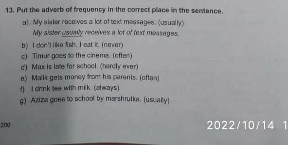 перед именами и местоименими просто вставляй эти слова типо I always drink tea with milk, Timur often goes to cinema.