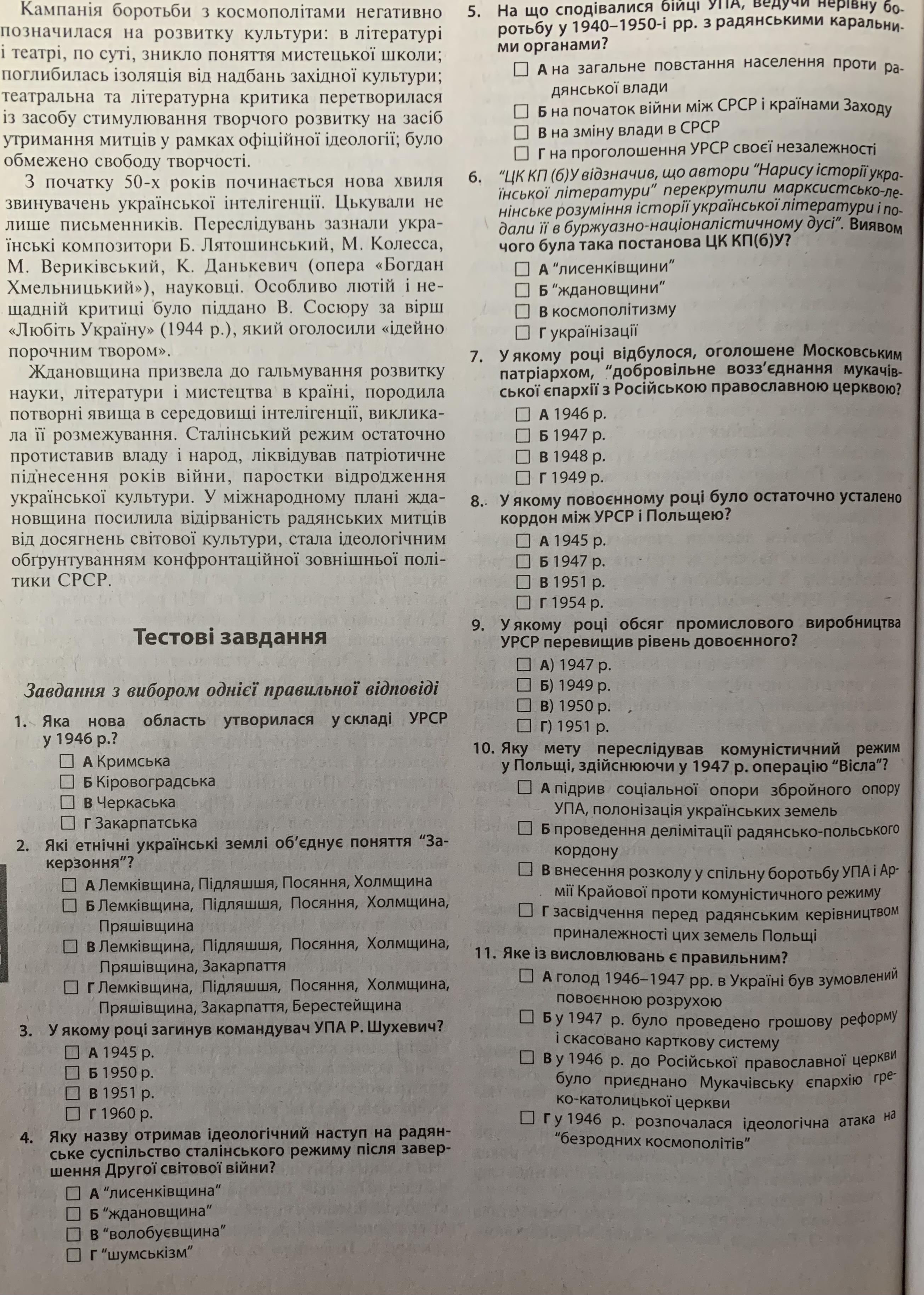 25. Які з зазначених явищ мали місце у розвитку культури України у другій половині 1940-х - початку 1950-х рр.?