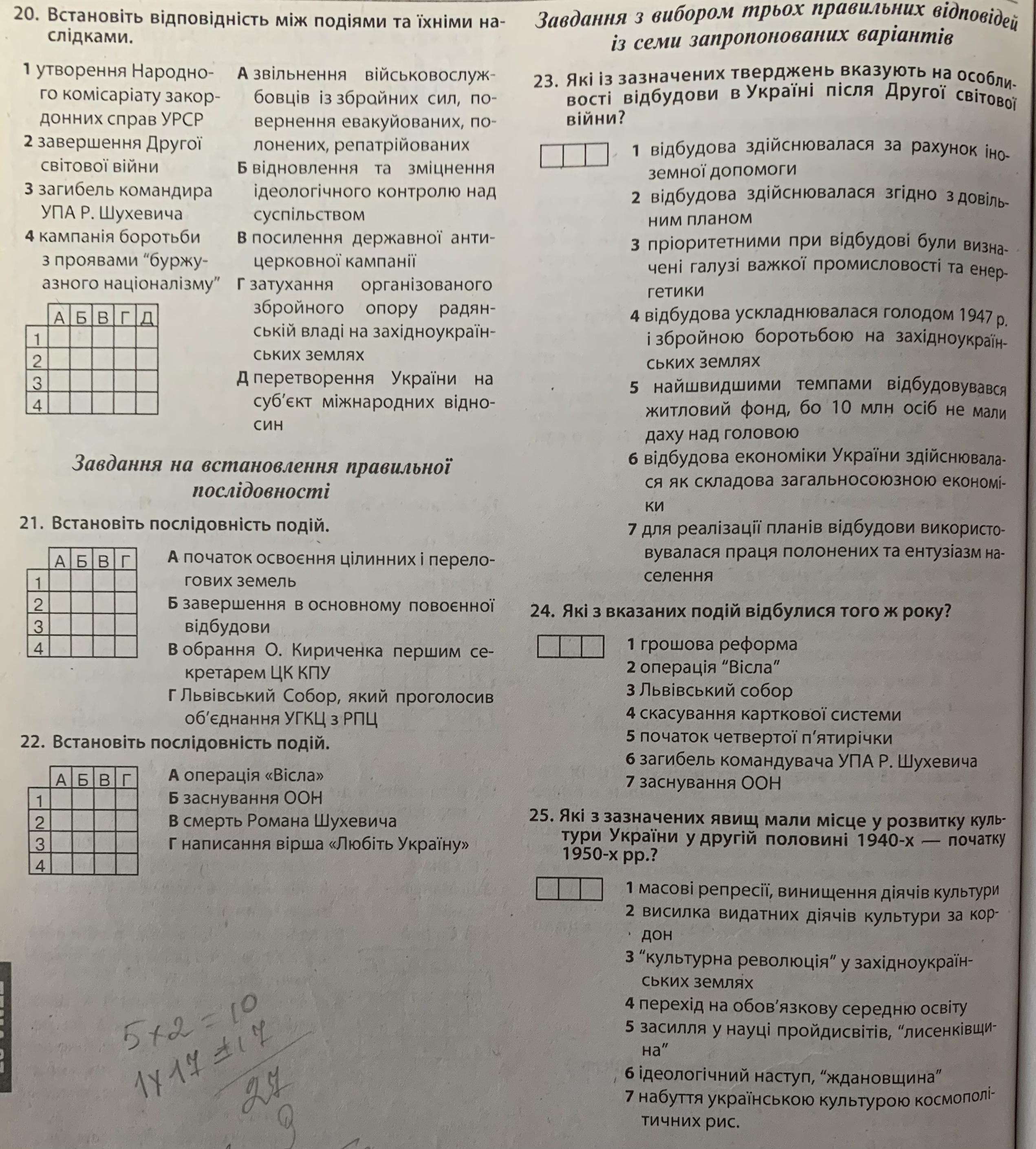 20. Встановіть відповідність між подіями та їхніми наслідками.