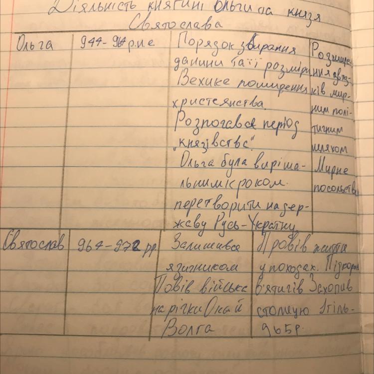 Практичне заняття: в хронологічну таблицю внести відомості про перших князів ( Аскольда, Олега,Ігоря, Ольги, Святослава, їхні походи та реформи. )