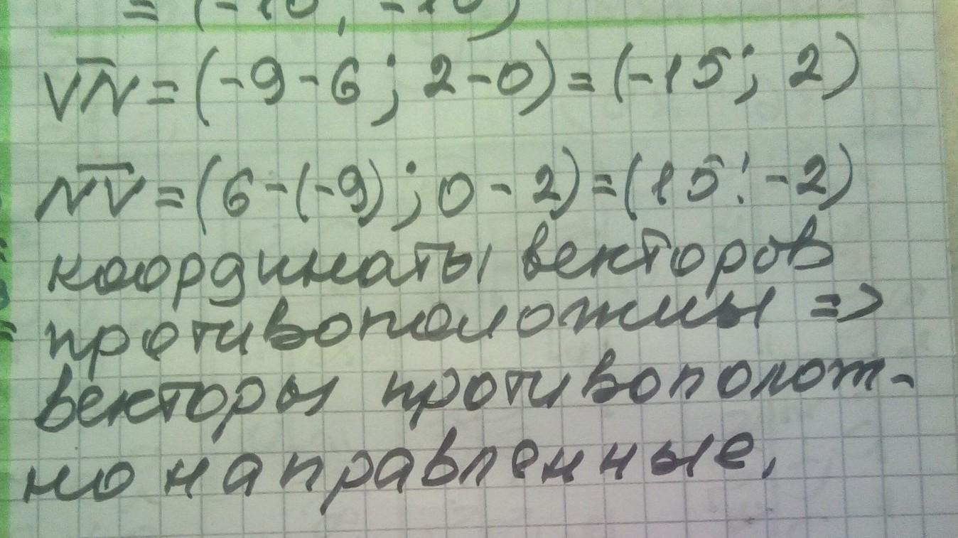 4.Есть точки V( 6 ; 0 ) иN( −9 ; 2 ) . Найди координаты вектораVN−→ и вектораNV